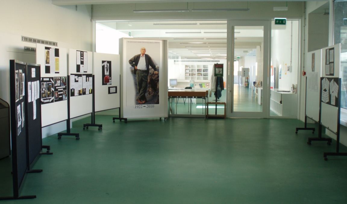 À entrada da Biblioteca encontra-se uma exposição sobre a vida e obra de José Saramago, uma singela homenagem a um grande escritor e humanista.