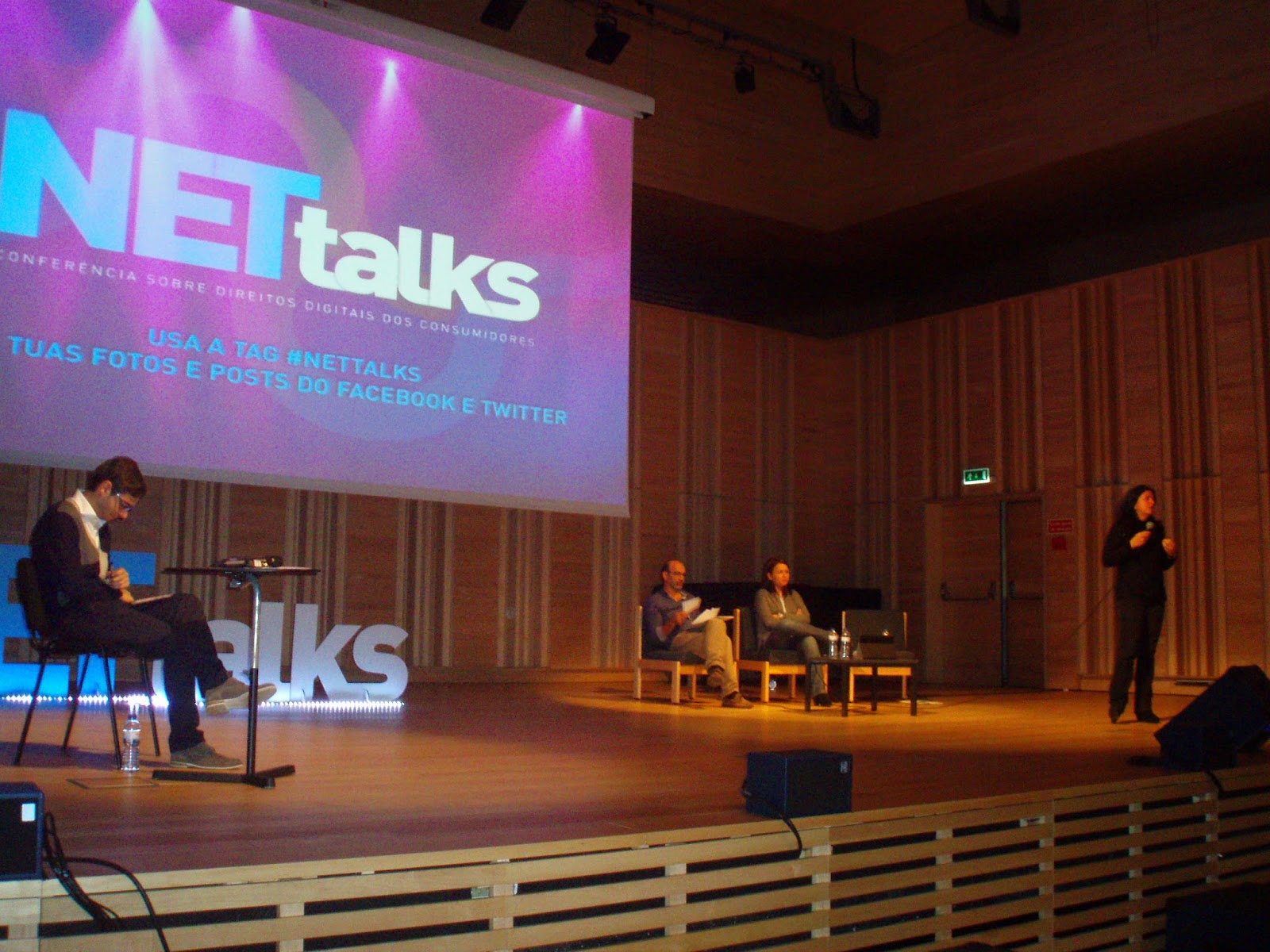 Teve lugar hoje na nossa escola uma Conferência sobre direitos digitais dos consumidores, "NETtalks - Achas que tudo o que vem à rede é fixe?", uma iniciativa da DECO, com o principal objetivo de alertar os jovens para assuntos tão importantes como os direitos digitais, as regras de segurança e de privacidade online, abordando ainda os direitos de autor, os cuidados a ter com a publicidade e nas redes sociais, os downloads ilegais, o cyberbullying, entre outros assuntos.